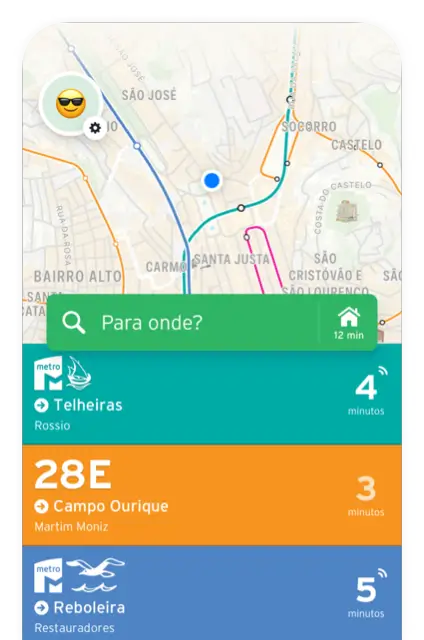 Descubra o estado atual do autocarro da Mobi Cascais ,12 na app Transit.